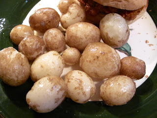 Never mind! I had a panful of lovely little buttered potatoes for supper tonight. And whatever I in my potato-growing nescience may have done today, I recall last year when I did so many things wrong-- like using sprouted supermarket spuds in the first place-- and it all came out so delightfully right.